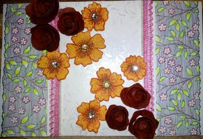 After the flowers are ready, I stuck them to their respective places (as shown in the picture above) using a double sided tape...so as to give them a bulged look...
