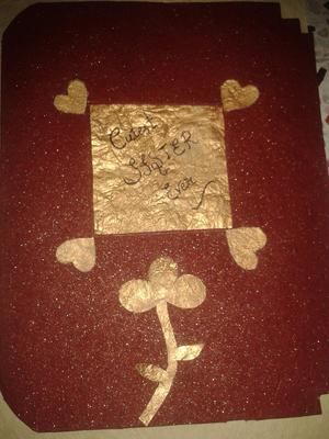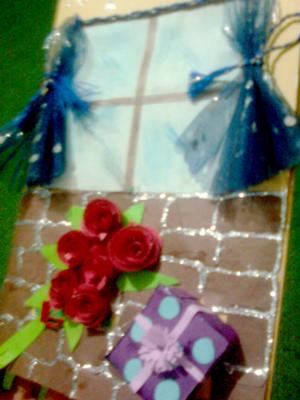 This is a birthday card I have made - decorated it with roses, ribbons and birthday present.